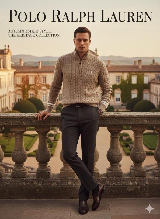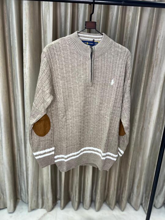 BROWN POLO RALPH LAURE_N CABLE KNIT QUARTER ZIP PREMIUM SWEATER